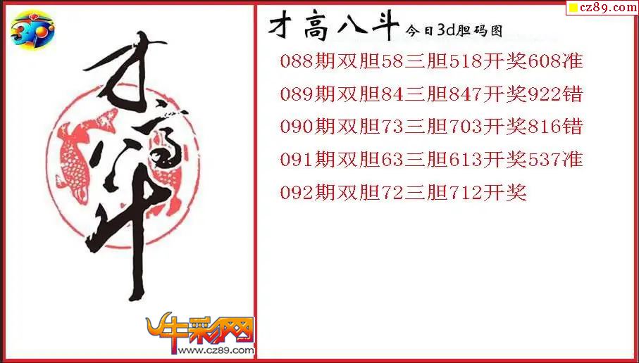 > 26年092期3d 才高八斗今日胆码图