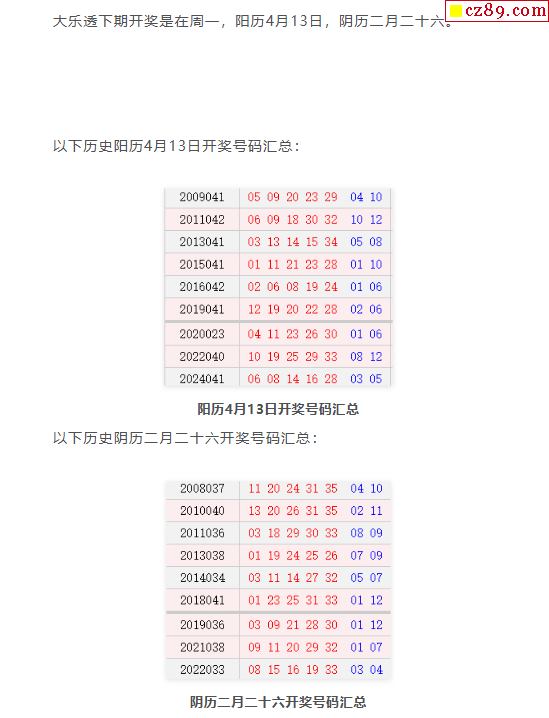历史上的今天大乐透4月13日开奖号码汇总